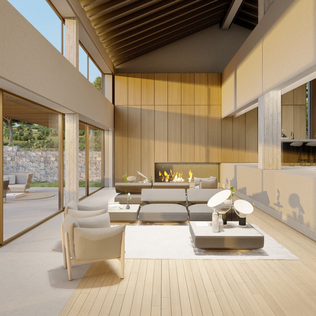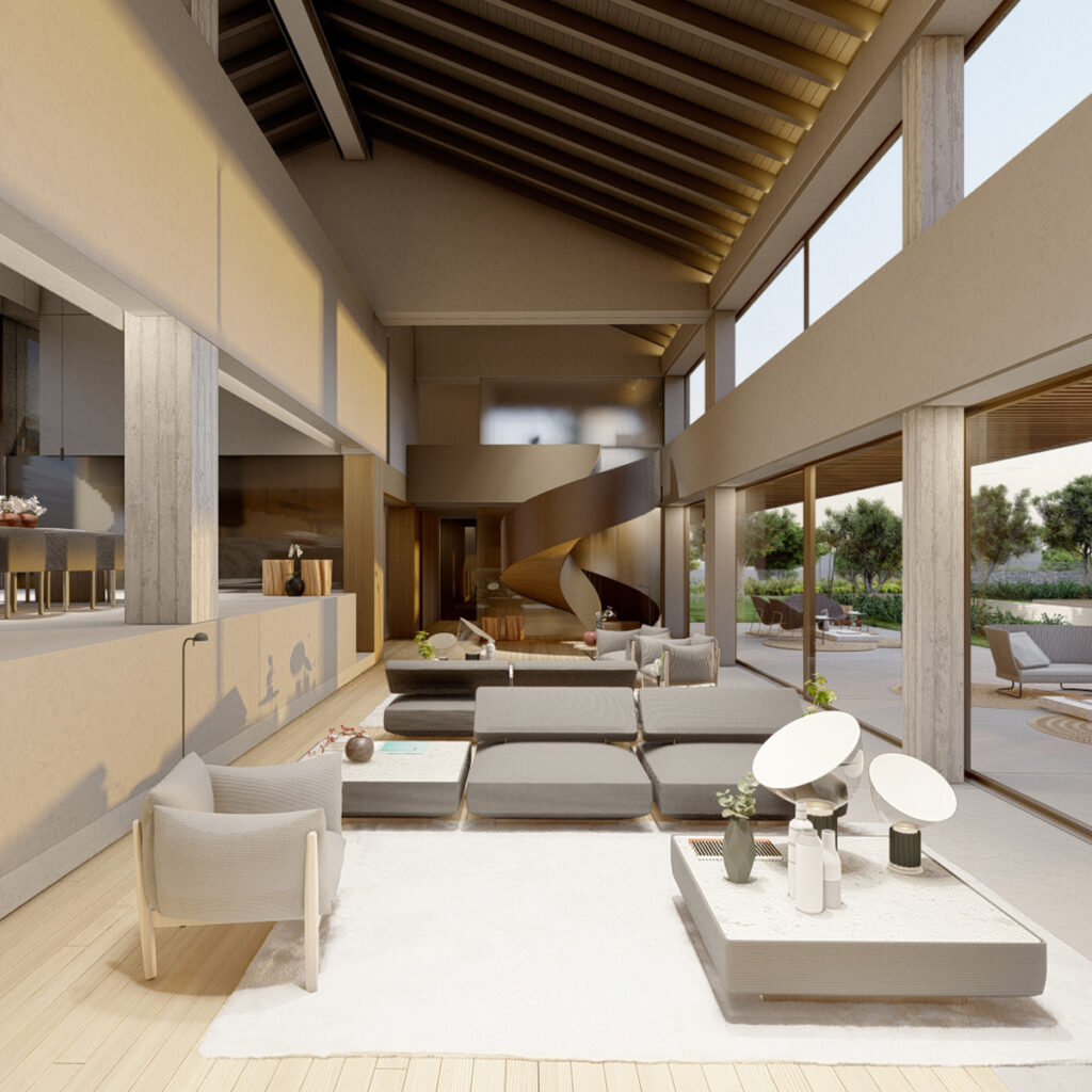 Drita natyrale është një element kryesor i dizajnit, e filtruar përmes hapjeve të mëdha dhe sipërfaqeve xhami që lidhin brendësitë me peizazhin përreth.